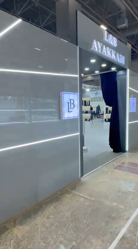 Aymod 2025 kapsamında L&B Ayakkabı için tasarladığımız fuar standında, markanın kurumsal kimliğini yansıtan, ziyaretçi etkileşimini destekleyen ve ürün sergileme alanlarını ön plana çıkaran bir tasarım anlayışı benimsendi.