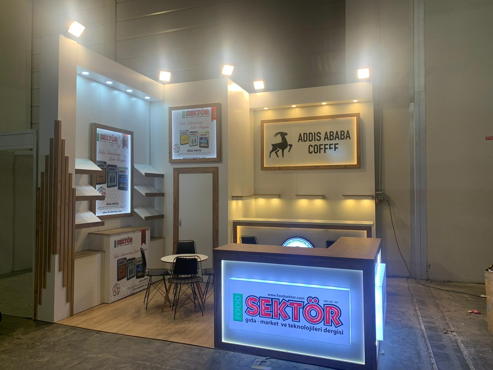 WorldFood İstanbul 2022'de Kenz Mimari olarak Sektör Dergisi ve Addisababa Coffee için fuar stand projelerini başarıyla teslim ettik.